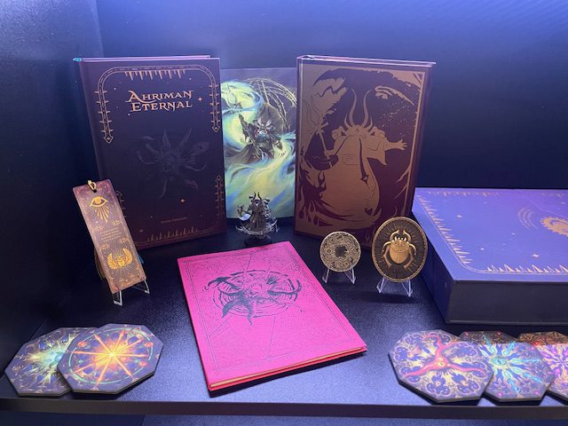 Image credit: Jay KirkmanHere's a closer look at the Ahriman shelf, including the coins, tarot cards, and bookmark from the Ahriman: Eternal Limited Edition box.