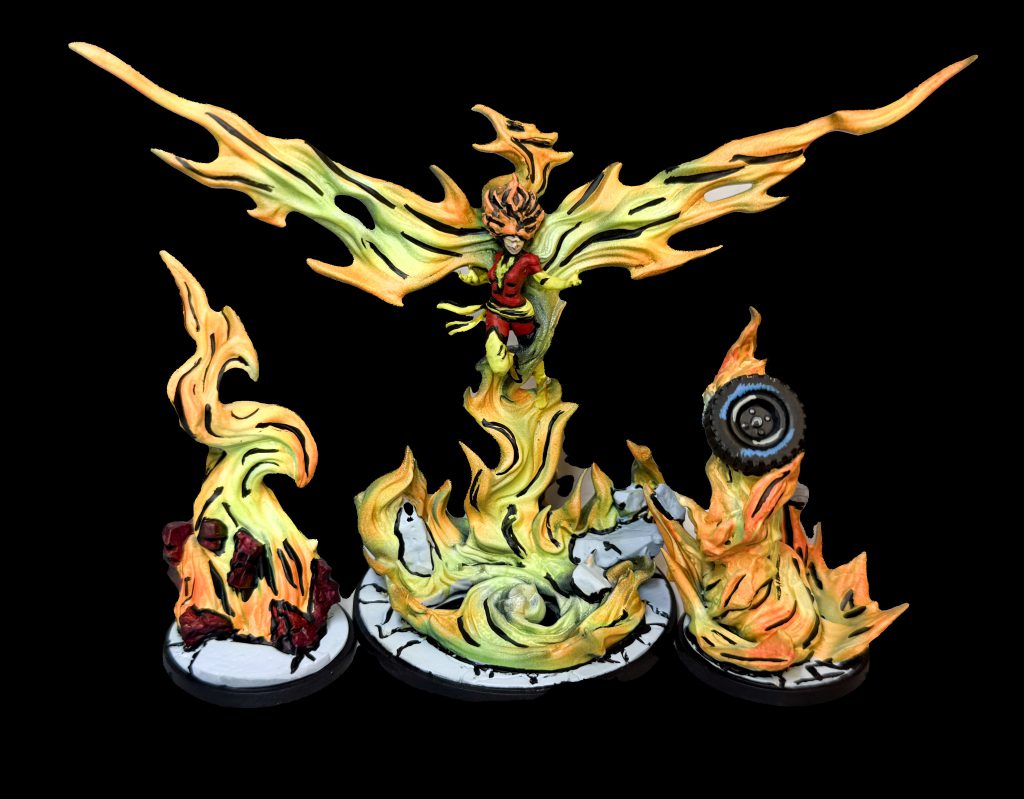 Phoenix Unleashed and Flame Pillars Image Courtesy: BeezerAnother month, another bunch of Marvel Crisis Protocol minis painted. I completed 22 models this month, in addition to completing enough terrain to have a dense, city-themed MCP board to play on.Ā Here are some of my favorites from this month:
