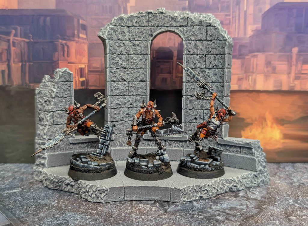 The Convicted, ready to rampage. Painted by Joshua Boyes, Jon Hodgson BackdropsOutside of my Black Templar and the Crusade campaign, I've been putting my usual effort into Kill Team. I've posted about my Goremongers before but now they are officially, totally, finished. (Until I buy another box.) These are some of my favourite models, and I really want to see more human cultist weirdos attached to each of the original legions. I'm eying up some Jakhals sometime just to keep up with this theme of prison-break freaks rampaging over some city.