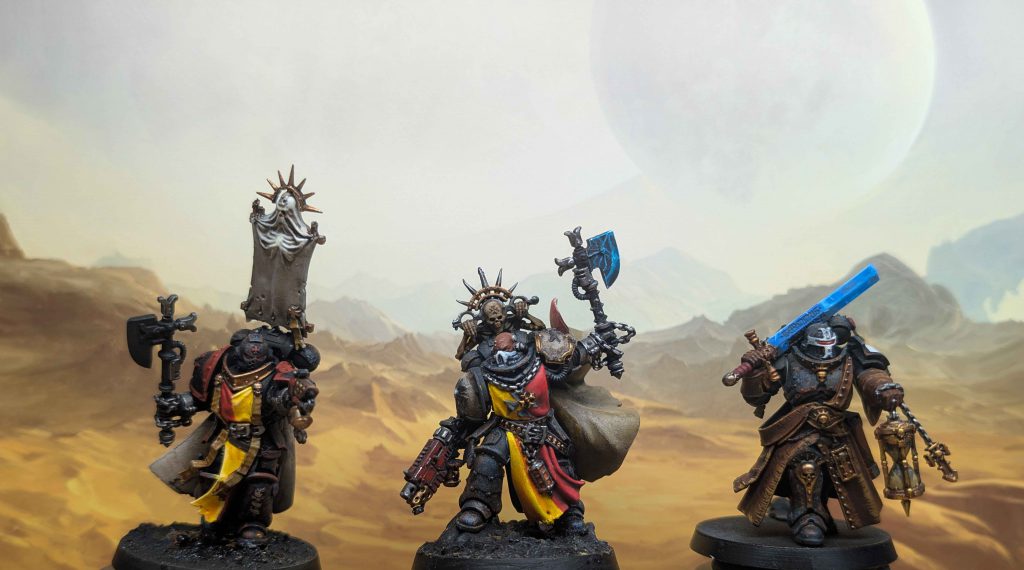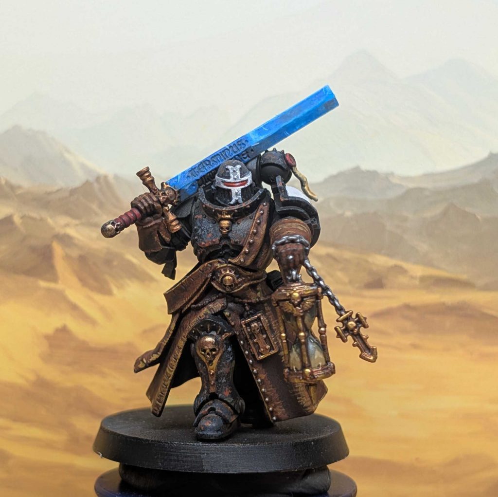 My Marshal of the Procession, and some members of his inner-circle. Painted by Josh Boyes, Jon Hodgson BackdropsMy Black Templar force is coming up close to 2000 (coherent) points, and I've finally gotten round to adding paint to my Judiciar who was sitting there primed since 2020. It was meant to be a quick paint-job to ready him up for a game the next afternoon and it ended up being one of my prized paintjobs so far, next to my Marshal.