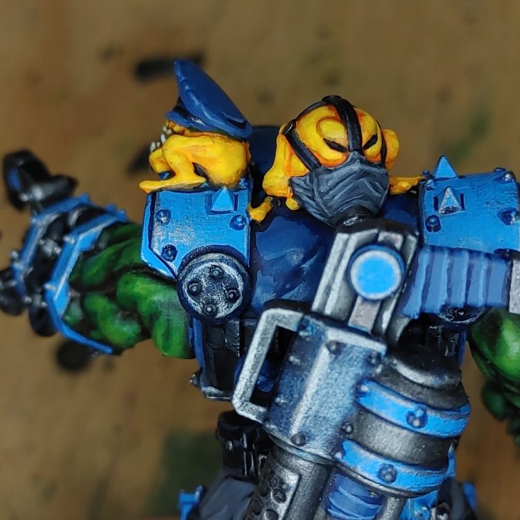 And the coolest project I completed has to be my custom Warmistress Boss that Gear Guts' Mek Shop made for me. The guard theme and loyal shoulder pets make this warboss so uniquely me and I love it.