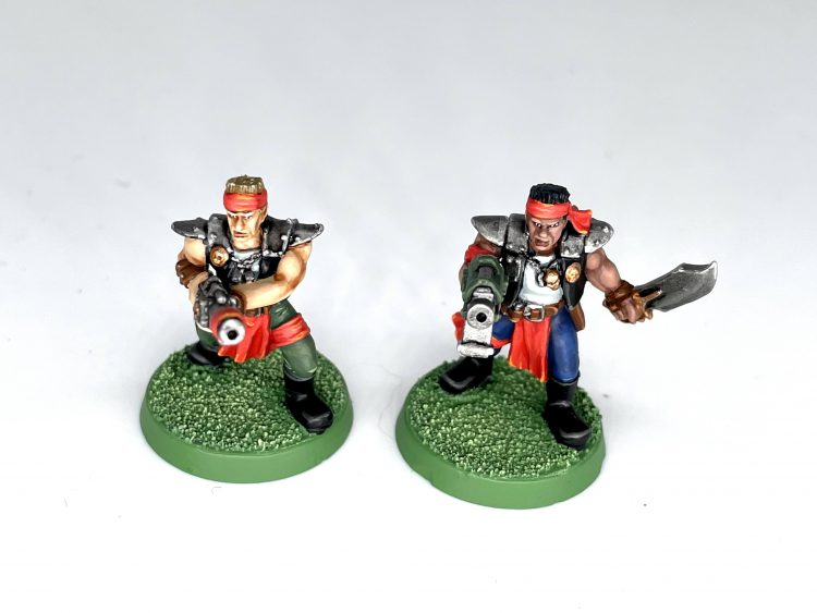 These guys absolutely ooze character, and have so many cool details and textures hidden throughout. They were deceptively simple to paint, even if carving the resin out from between each goddamn chainsword tooth took me an hour alone. Building them really wasn't fun, but painting them was an absolute blast. Next, I got right into the spirit of Goonhammer '96 week and knocked out some retromunda dipshits to really class up the joint.