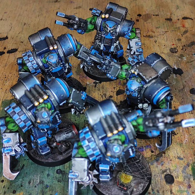 Meganobs are my auto-include unit in all of my lists. These 5 were a blast to paint and I can't wait to tackle the next 10. I really tried with my Ork army to make a scheme I could do quickly that still caught the eye well when the force was put on the table. I think that bright electric blue did the trick.