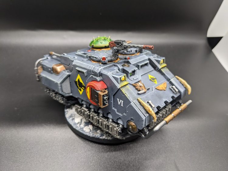 After having stained a few brushes blue, I decided to finish up a model I built and primed back in February: a second Space Wolves Impulsor! This one I think came out far, far, far better than my last one.