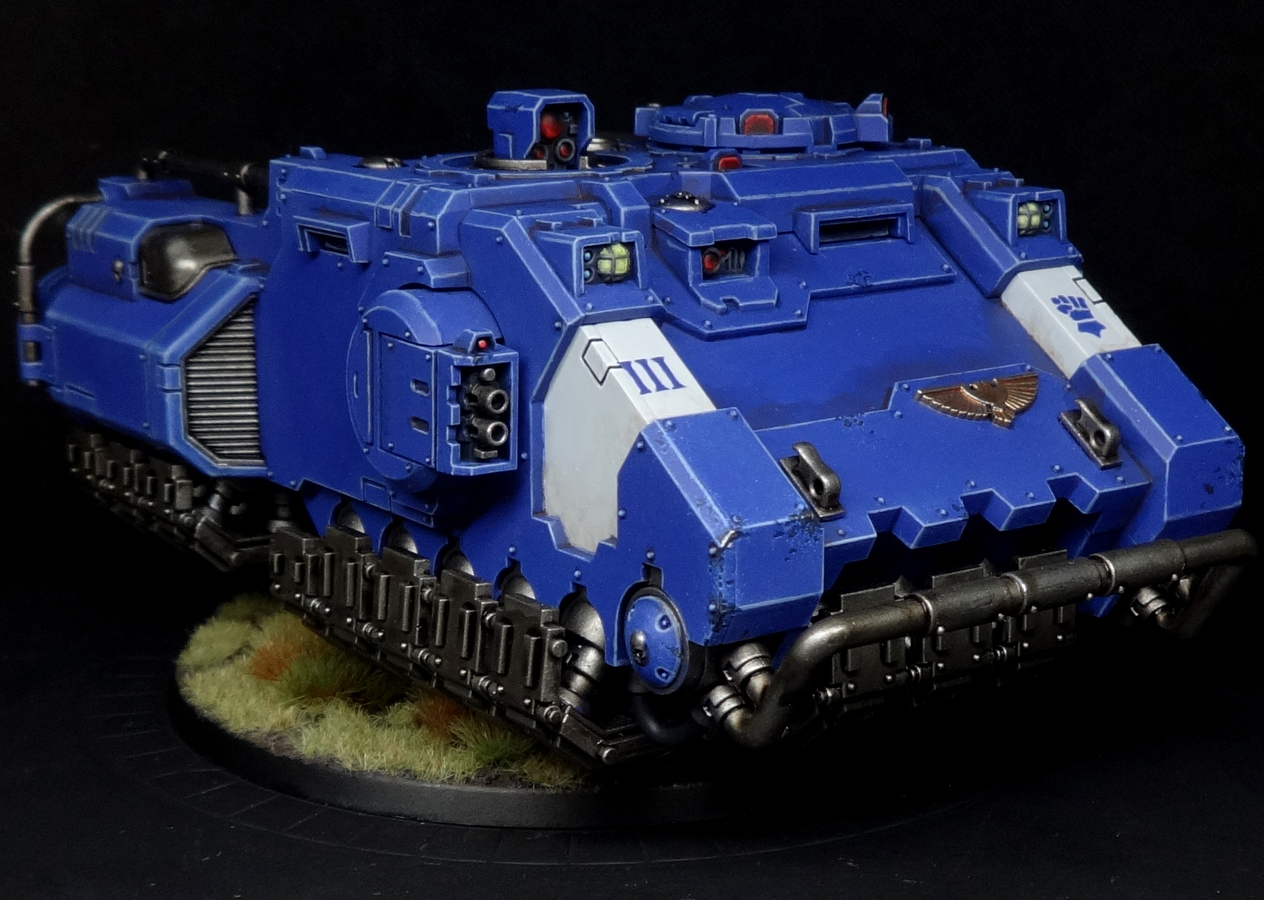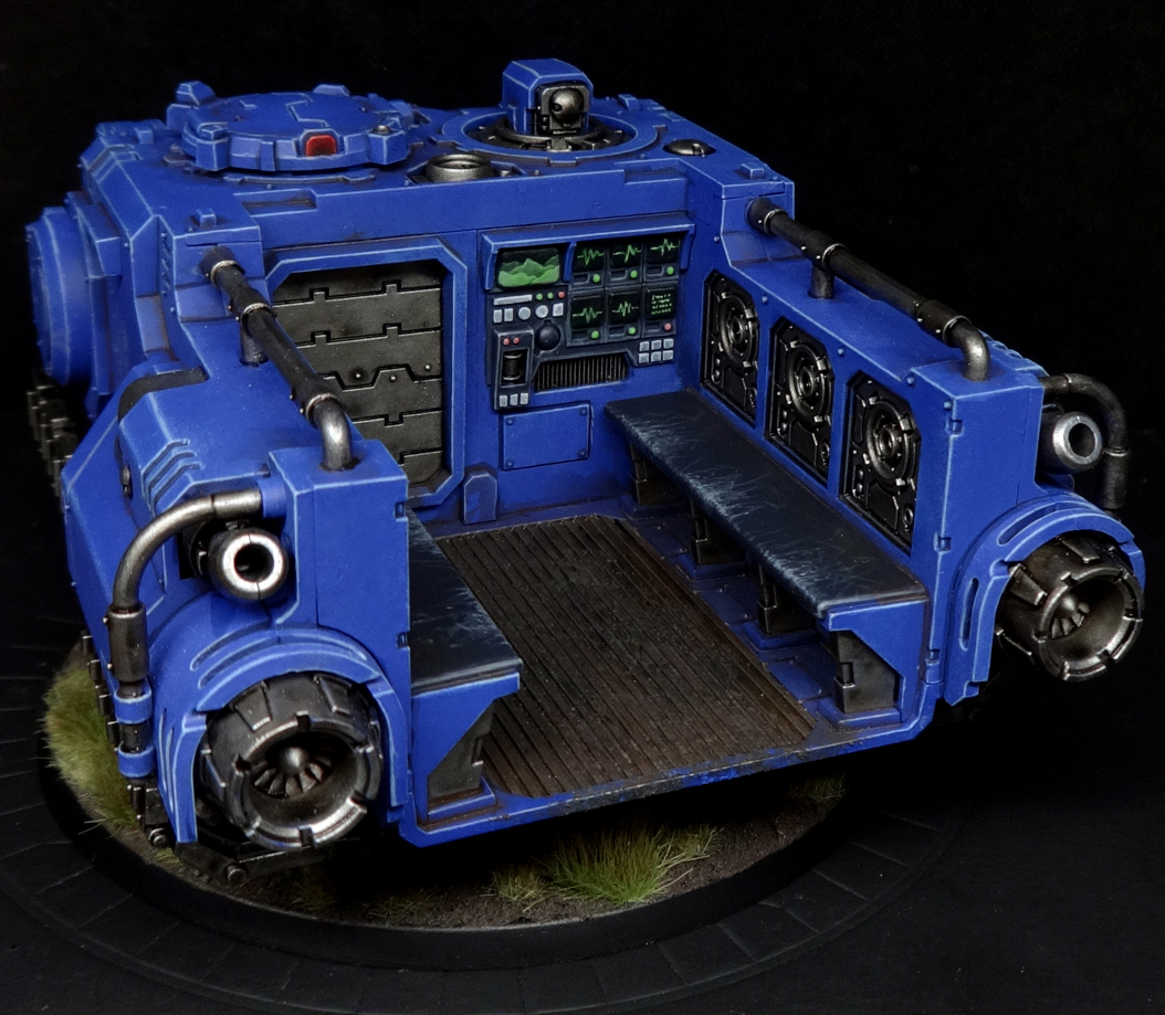 This month I have mostly been building and painting myself 110 points of go faster. When the zippiest thing in your 1800 point army is a Repulsor Executioner, capable of ten pootly inches a turn, you done cocked it as far as 9th edition 40K is concerned. Thus, a no-frills Impulsor: