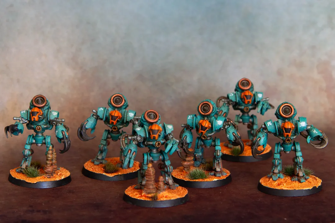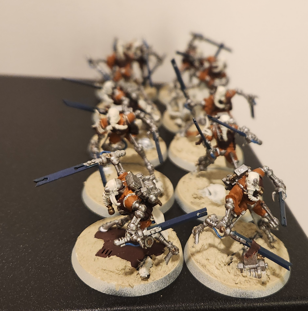 Rustalkers in-progress. Credit: Carter KachmarikFurthermore, I've started work on my next batch of Ruststalkers, a fantastic addition to the force that was direly needed. While admittedly a more subtle conversion, these having some more cloth & different backpacks do just enough to keep them in-theme.