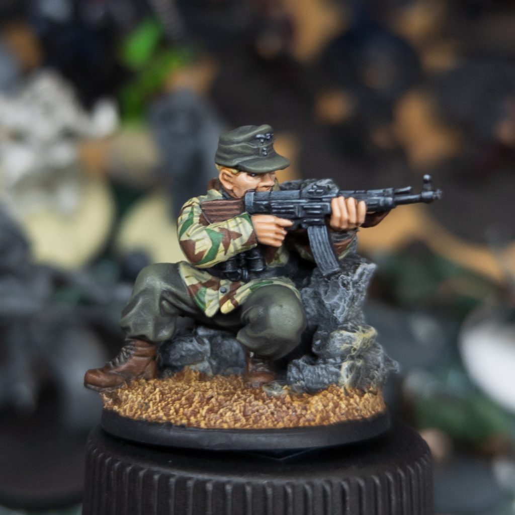 Credit: MommaNeganFirst off is the promotional miniature from this month's Bolt Action Compendium. First proper go at a model with a full Splittertarn Zeltbahn and I'd say it turned out beautifully!