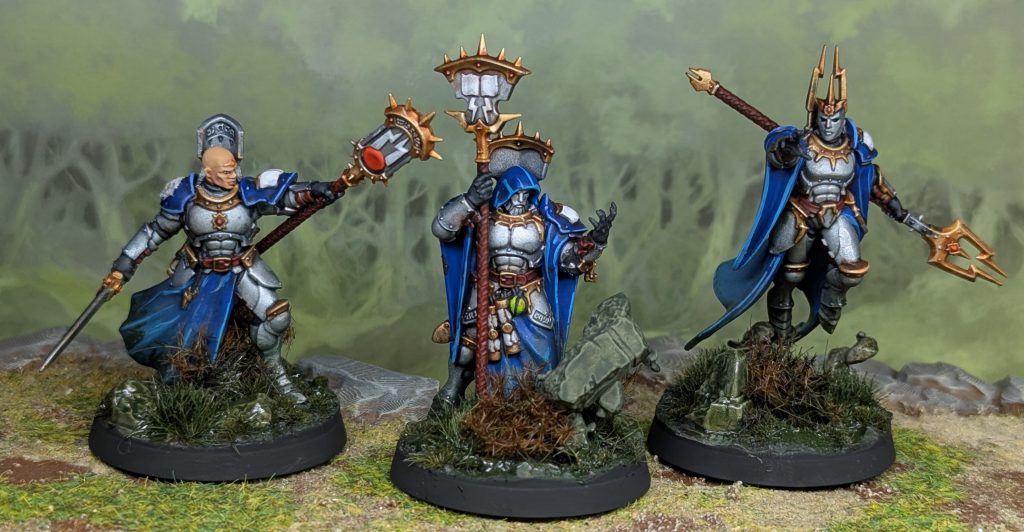 Stormcast Eternals Stormcoven. Credit: Rich NutterI also dug a couple of old models out of the cabinet, leftovers from previous aborted attempts at Stormcast schemes from earlier years before I settled on the Hallowed Knights after reading Plague Garden. Two Knight-Incantors and a Knight-Zephyros (previously Neave Blacktalon) got rebased to fit in with my army, and I figure they're all specialist enough roles that it might make sense for them to travel with a different Stormhost from time to time. As much as anything, I wanted to preserve the effort I'd put into the two limited Incantor sculpts.