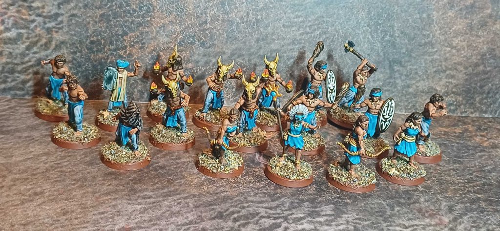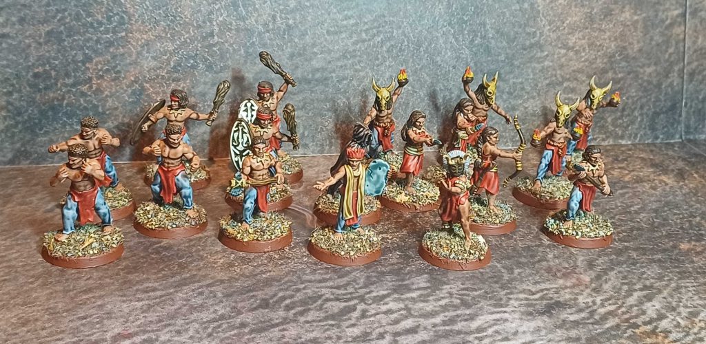 Credit: Jackie DaytonaFor Tribal Conquest I finished up two warbands. You can expect a review on this game in the next week, it’s got a great theme and plays rather excellent. The models paint themselves really, a proper fantasy/paleolithic look.
