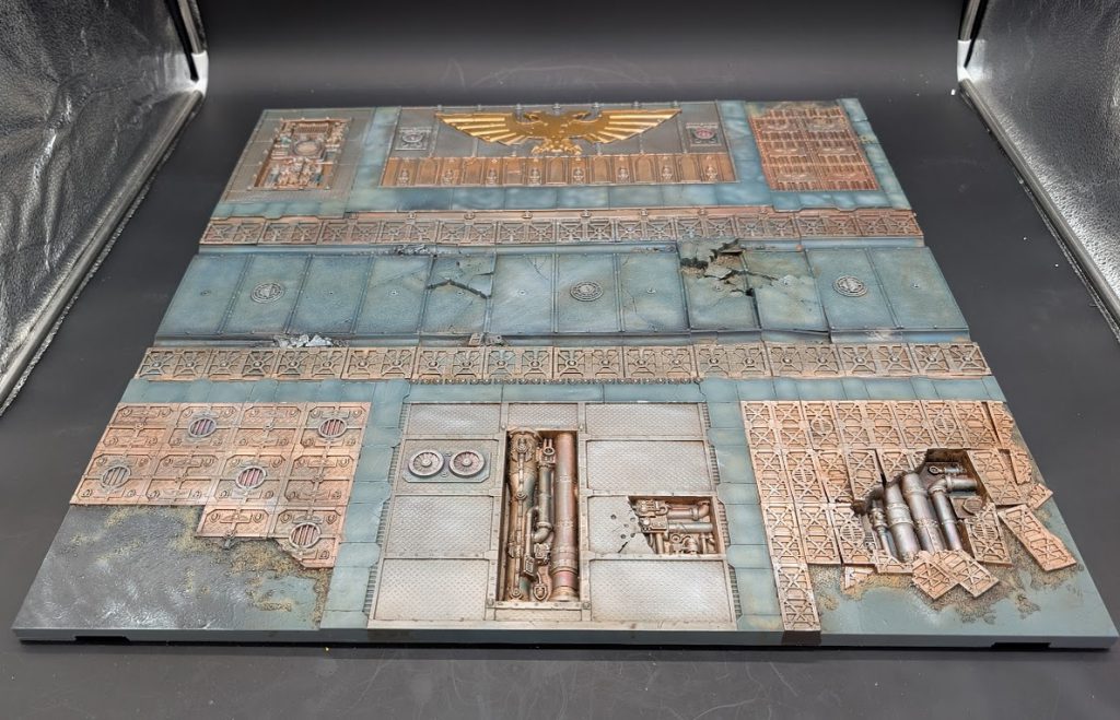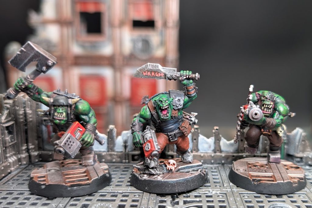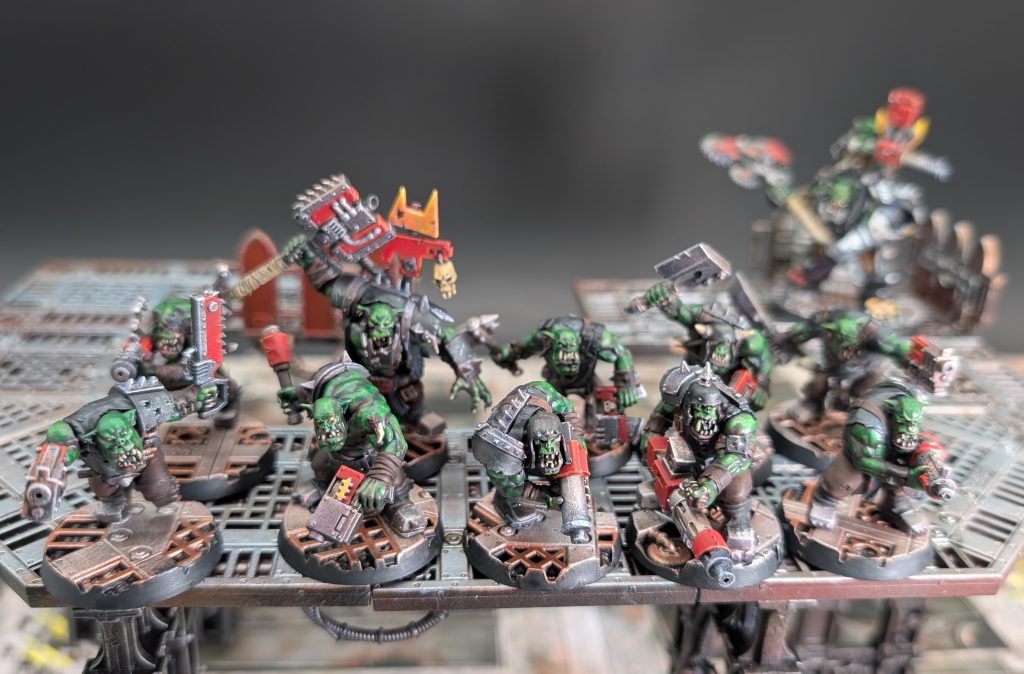 Ork Boyz (2021). Credit: Contemptor Kevin StillmanAfter them, I worked on two projects at once. The first project was an indulgence for my miniature photography and for my Warhammer Store's Million Miniature challenge, and so I painted up another mini I purchased in 2026: a Realm of Battle Tile. This was done mostly with rattlecans, varnishing, and airbrushing. The only brushes to touch this model were one with a thick oil wash and then a drybrush to bring out the highlights on this plate.