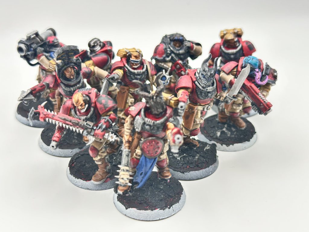 Red Corsairs Scouts. Credit: Ezekyle CatbaddonBoy, it was actually pretty fun to do it! Red is always a nice color to paint. Thankfully the individual models are still easy to tell apart, I didn't wanna do too much Crazy Chaos Shenanigans. I haven't actually used this Kill Team yet, and I'm excited to play a game soon!