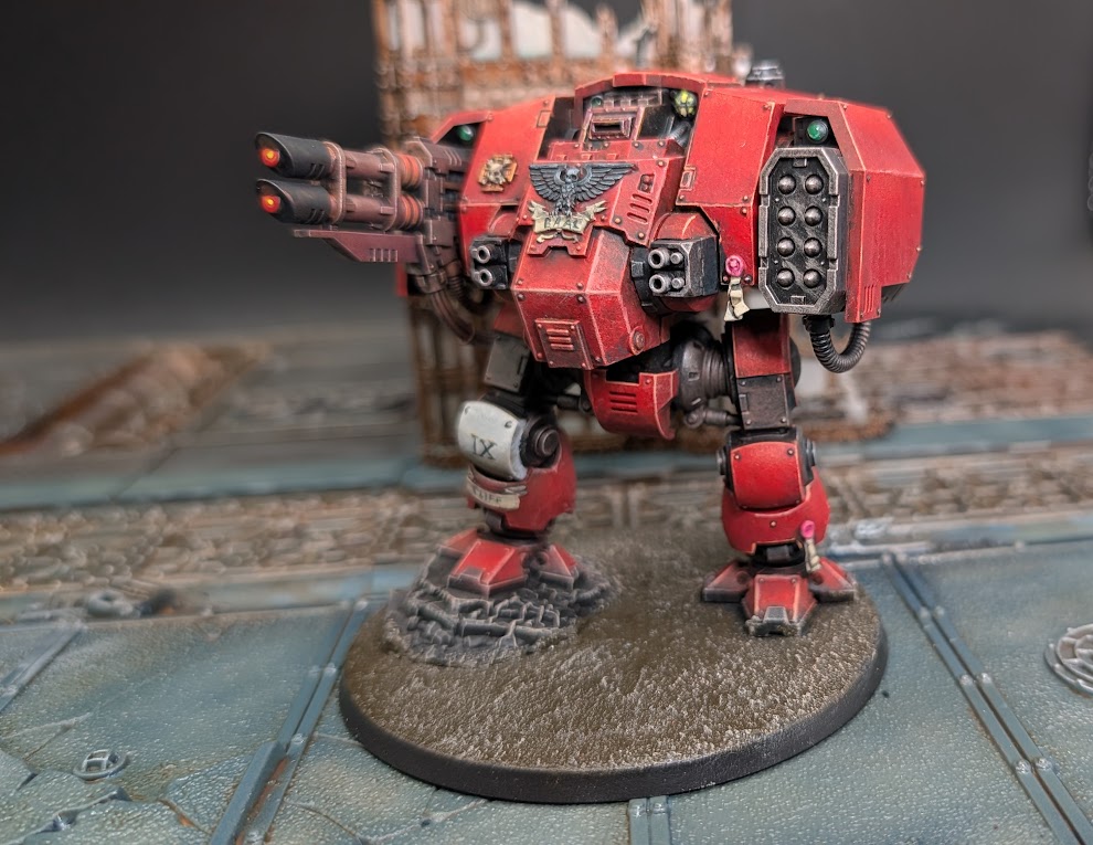 First was from Will Hahn's Warhammer vehicle armor masterclass. I actually had previously taken this class in May of 2024, where my initial attempts to paint a Blood Angels Ballistus Dreadnought went off in a more avant garde direction. But in March of 2026, with the Armageddon reveal fresh in my head and on my torso (clean clothes are clean clothes, thanks GW), I stuck to the assignment.