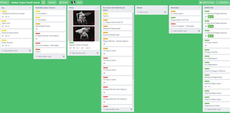 Beanith's Trello Nov updateMy Daemon Prince finally arrived, almost 6 months to the day since I backed in on Kickstarter which is pretty good. Aside from that, my Death Guard project sits motionless.