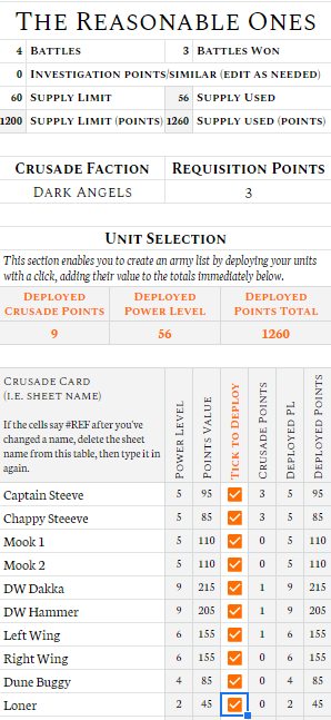 Beanith's Test Crusade List - Charlie B's genius Spreadsheet toolHobby