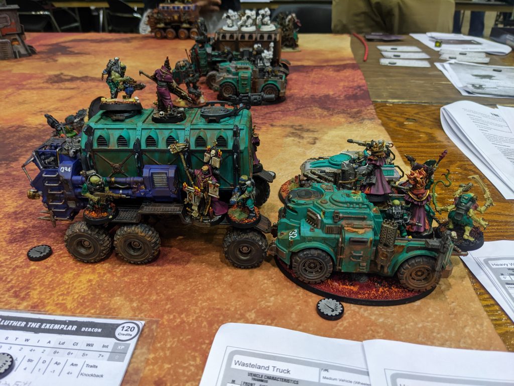 I participated in the Michigan GT in early October and had to finish a bunch of stuff for it - mostly for Necromunda and 40k. After that I took a little break and then did a bunch of stuff for Don't Look Back, Black Site Studios' horror themed slasher game.I didn't get any studio shots of my stuff because I've been so busy lately, just in-game shots. I painted two Ridgehauler trucks for Necromunda and one goliath truck (now I have three) for my Genestealer Cult.