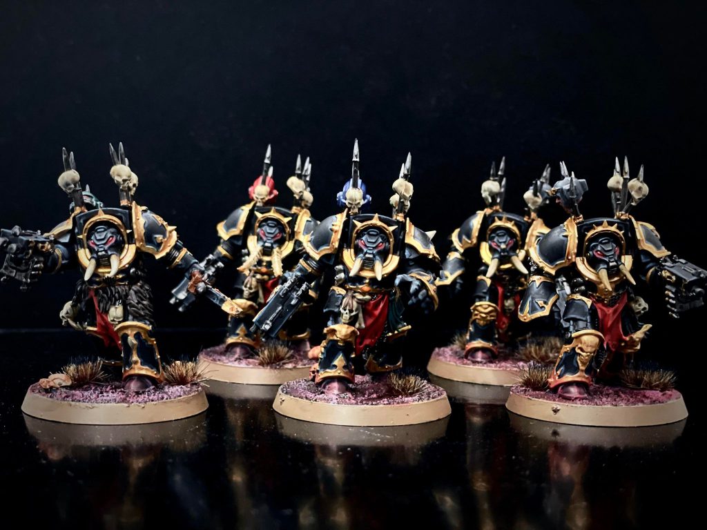 Earlier this year, I made the horrible choice to paint up 2500 points of Chaos Knights in about a month and a half in order to play them at the GHO Narrative. After losing an alarming amount of sleep doing this, I thought “I don’t think I ever want crunch like this again.” Being the dumb idiot I am, I decided that I would in fact do this again and crunch painted a bunch of Chaos Space Marines so I could run Creations of Bile at a local GT.Events are great motivators to paint. Perhaps too big.