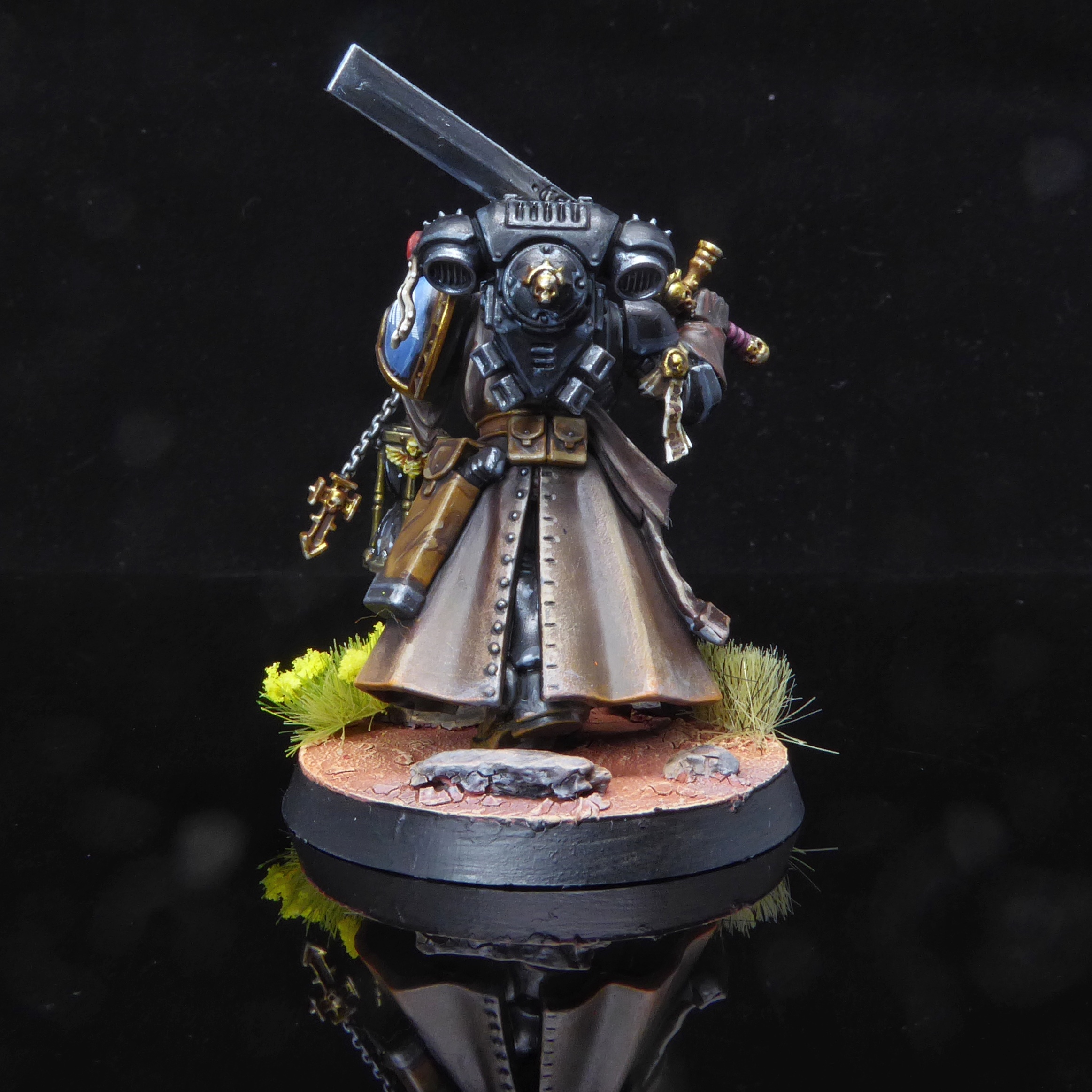 After powering through the plebs, it was time for characters - starting with chaplains. At first I was quite intimidated by having to paint and highlight black armour but I'm very happy with this result. The chaplain I think is easily the best thing I've painted in months.