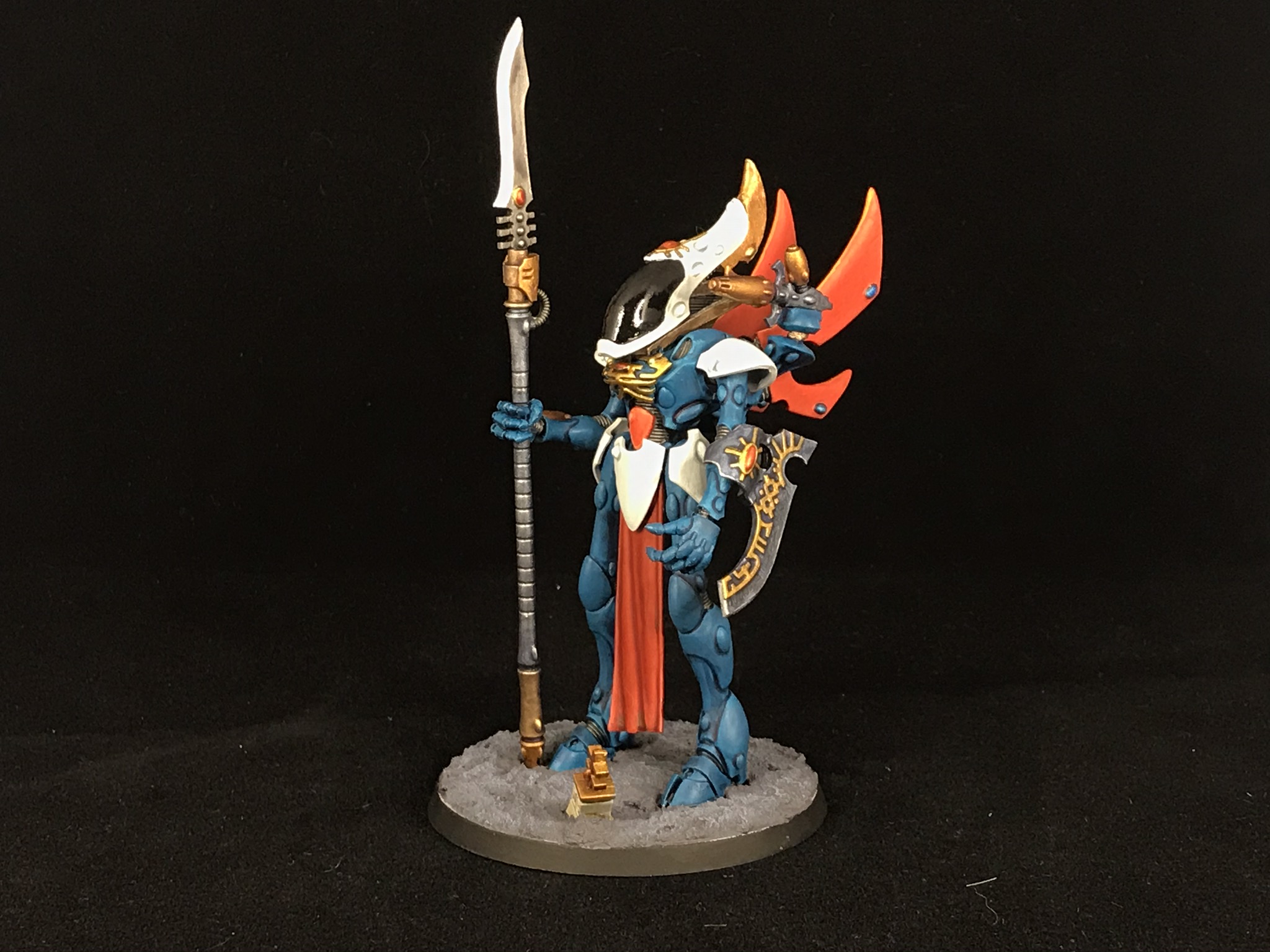 Astute readers will notice that this is not, in fact, my regular Eldar scheme. I'm pretty sold at this point on an Ynnari patrol lead up by this guy and the Yncarne as being a great tool for 9th, so picked out a new scheme to make sure the detachment was clearly distinct from my main force. My original plan had been to go with something that could be easily transitioned to my regular scheme if (or lets be honest, when) a silly gimmick build for this guy doesn't necessitate separating him out, but that slightly fell by the wayside as I got into it and the siren lure of bright orange called to me. I'm pleased with the result though, and the Wraithcannon is magnetised so I can stick the d-cannon on if needed down the line.