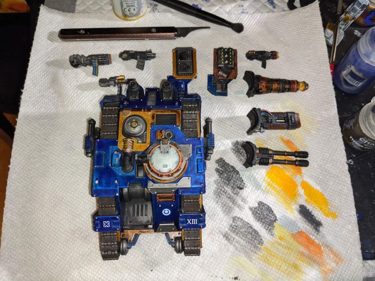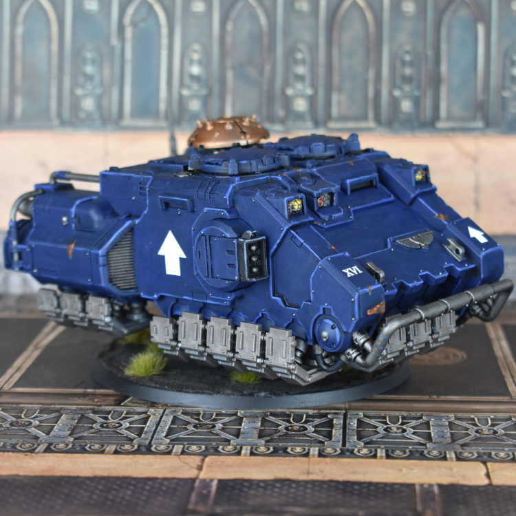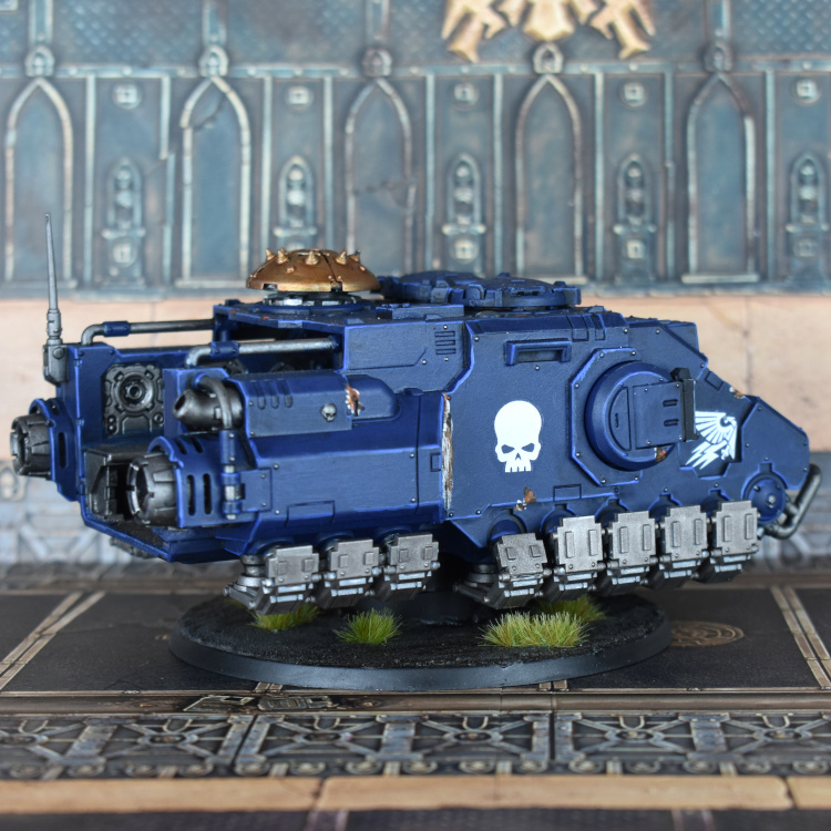 So I finally picked up one of these cuties. I'm hoping that it gets 40K Rules in the upcoming Forge World index, but if not....it's still pretty nifty. I magnetized all the guns (primary and secondary), and am using friction fit for the removable ammo panel up top. It's pretty easy to magnetize the main guns, but the pintle gun is a bit trickier.