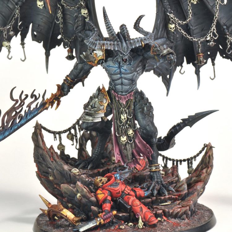 This month I painted up Be’lakor for a friend, so I stuck as close as possible to box art colors except for switching out a Blood Angel for the Ultramarine.