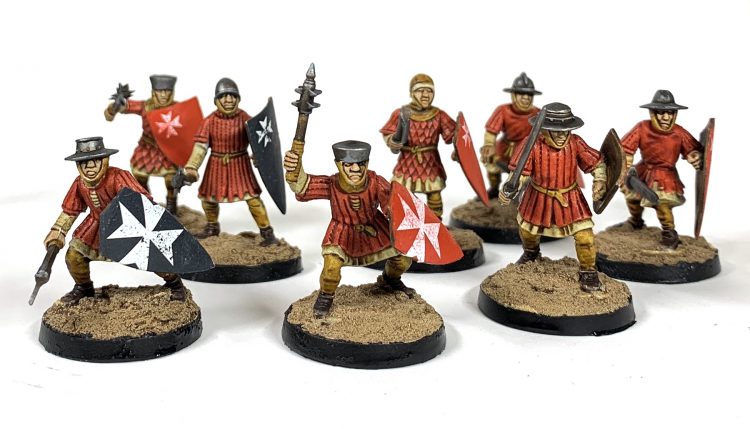 Hospitalier sergeants. Credit: Pvt_SnafuOne of the other things I wanted was a set of models I could paint quickly, when I wasn't in the mood to do something that took a lot of thought or detailed control. Enter contrast paints and historical miniatures. These chaps are primarily going to be used for Saga: Age of Crusades and will eventually be joined by a Hearthguard of 8 mounted knights, 8 crossbowmen and 8 spearmen.