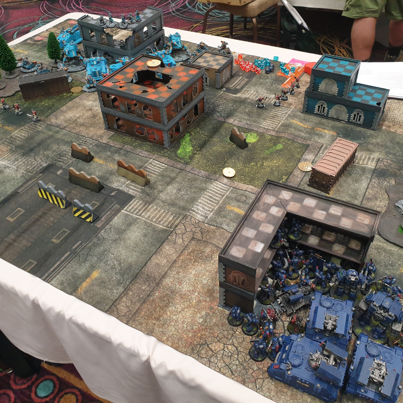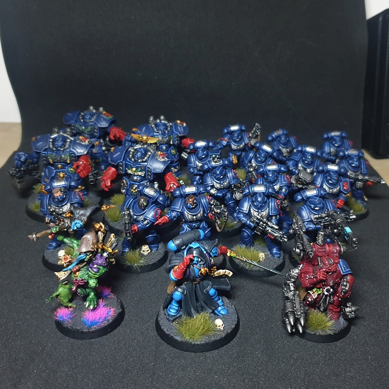 The one picture I remembered to take at LVO, deploying against Steve W's incredibly bright and cheerful Ad Mech.For February, I need to finish off that squad of Centurion Devastators, and then I pretty much have an open field. I bought Tor Garadon the other day with the intention of painting him blue, some more Intercessors and the remaining Shadowspear Infiltrators, a GSC Magus, and that's just the stuff in my direct line of sight as I type this post. Lots to be getting on with!