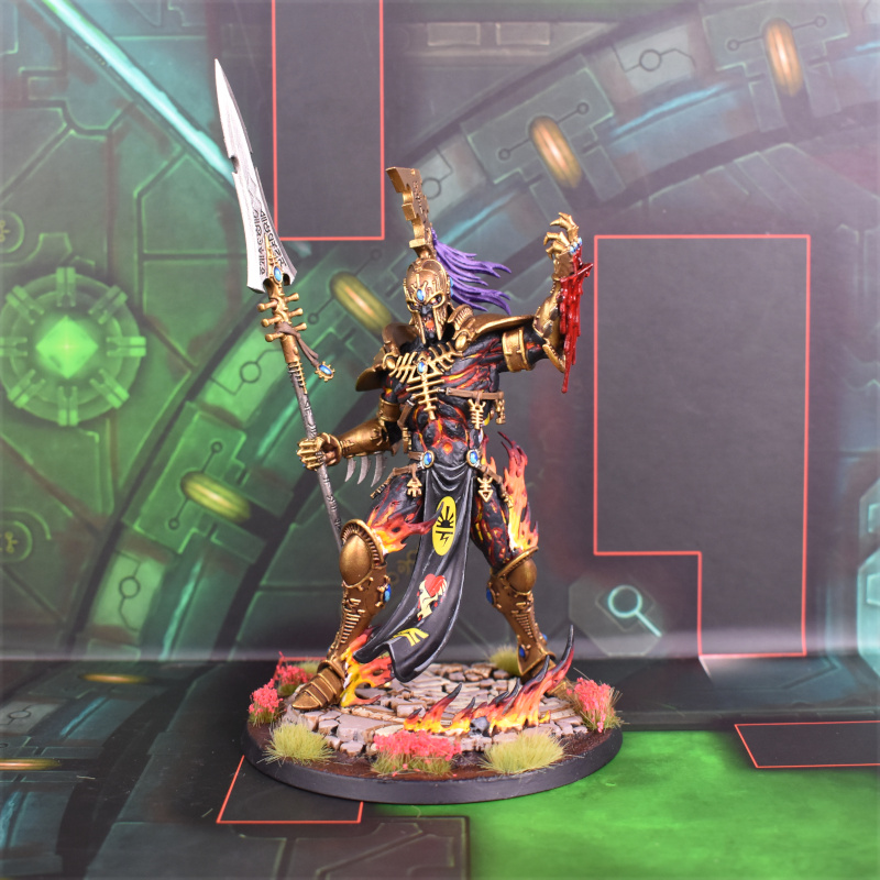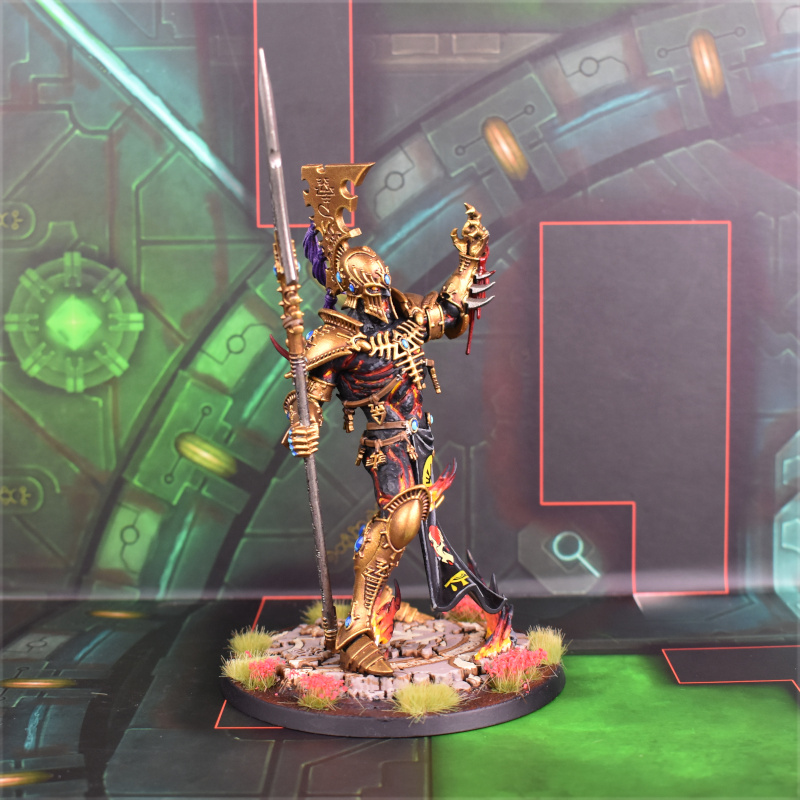 He was a ton of fun to build and paint, and I'm pretty happy with how he turned out. Weirdly it turns out that there is no Rune of Khaine on the Aeldari transfer sheet, which is annoying - instead I used the old Har Ganeth symbol from the Dark Elves transfer sheet in WHFB, which after all represents the Heart of Kahine as worshipped by the Witch Cults in that system. Now I just need to get the rest of my long-neglected Craftworlds army up to speed so I can get him on the table.