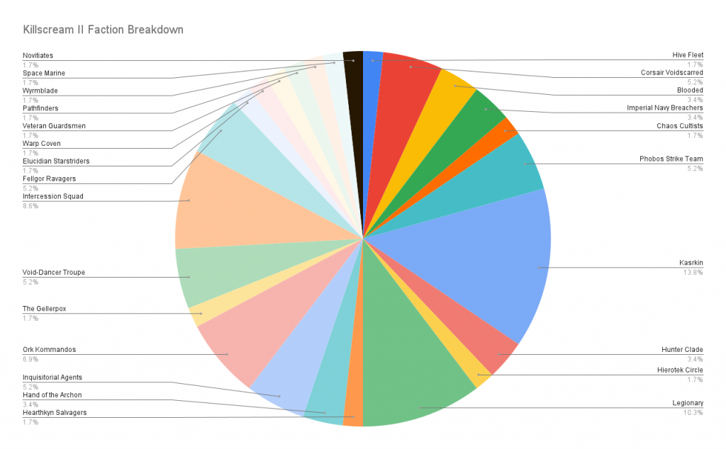 - I think that we didn’t see a lot of Kommandos at Killscream 2 for the same reasons that I brought Kasrkin again. We don’t have people jump around teams a lot here. They find a team that they like and stick with that team, for better or worse for the team. Sometimes it works out, like my experience with Kasrkin. And sometimes it doesn’t, but the love for how they play, the lore, or just the models and the rule of cool overrides the want to switch to a more meta team. I know we have quite a few players that have dabbled in other teams, but went back to the team that just feels right for them.