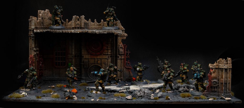 - My team usually starts on all conceal, besides my gunner with the grenade launcher for some perceived threat and I play a pretty cagey game with my Kasrkin, trying to set up shots and make sure that in turn two and three I can maximize my damage, even if that means giving up some primary points in those turns. By turn three and four I can swarm the board with what’s left to make up for it.