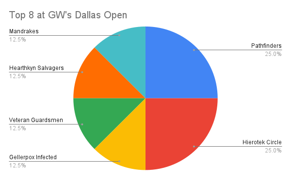 Everything is bigger in Texas, credit: Mike CIn the post-dataslate world it seems that players have opted to explore the stronger teams in Dallas, with only 19 factions in attendance and a full eighth of the meta being Heirotek Circle. Additionally the new Nightmare box seems massive popularity on par with the 16% play rate in the wider world meta. It seems players stuck to the more powerful teams, and fewer players opted to explore Scouts, Blades of Khaine, and other weakly positioned teams.