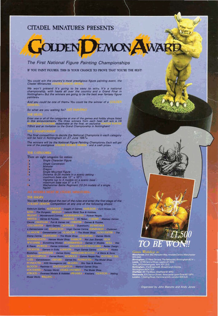 White Dwarf 87 announces the Golden Demon. Credit - Games WorkshopWay back in 1987, when White Dwarf cover art looked more at home on a wizard van and mostly contained content for role playing systems, a full page advert announced the first Golden Demon.