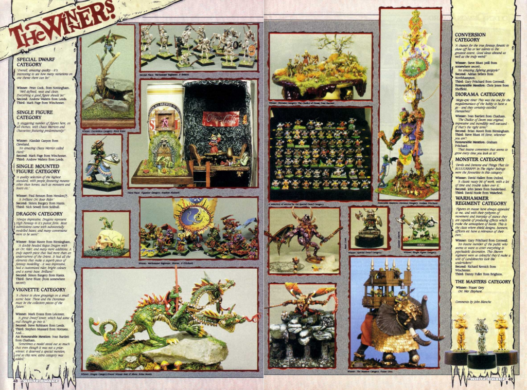 After having their entries judged by the legendary John Blanche and Bryan Ansell, finalists would receive cash prizes of up to 250£ to accompany their trophies, with the best in show winning the Slayer Sword.