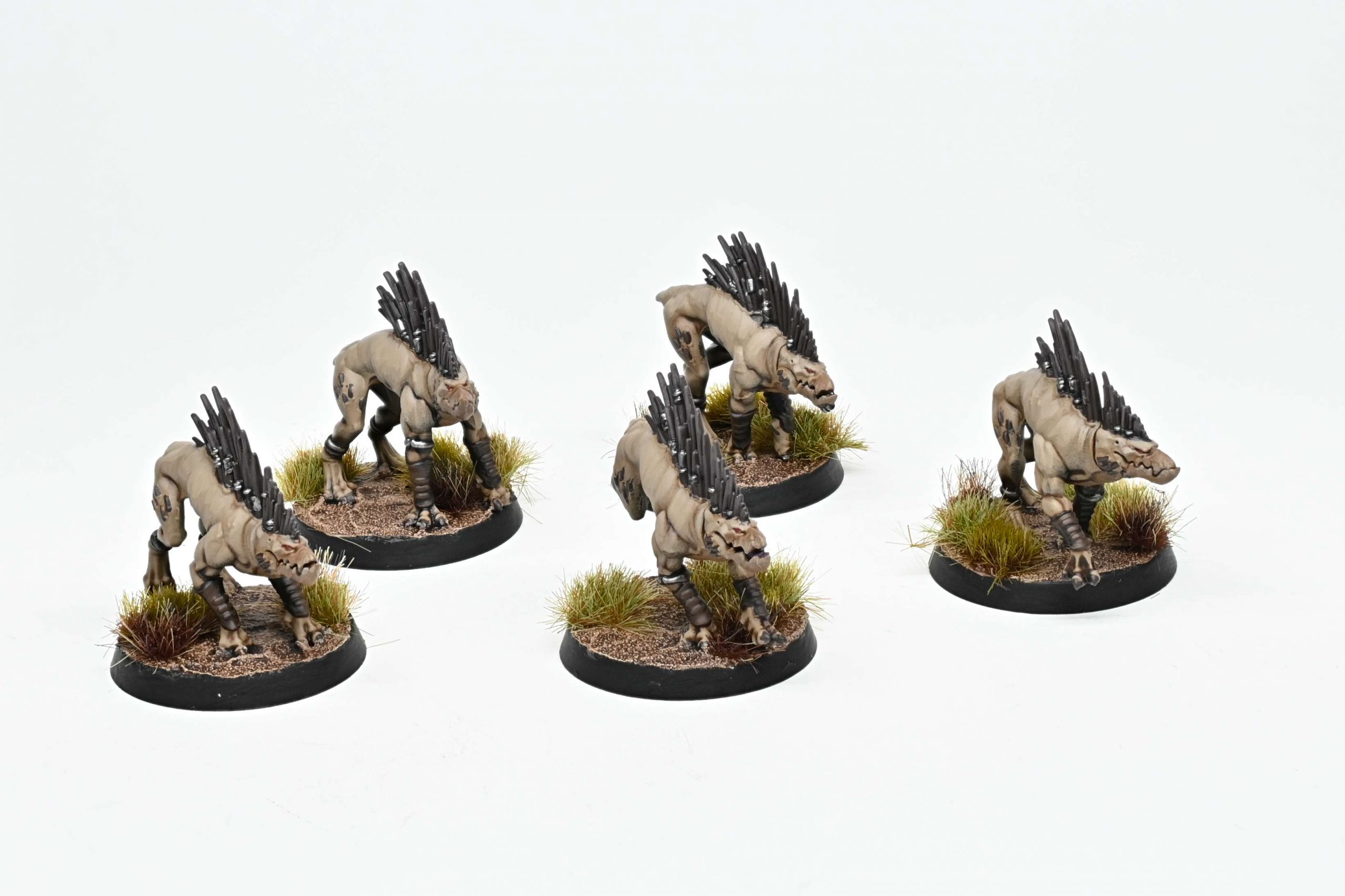 Kroot Hounds. Credit: RockfishAs another escapee from resin purgatory, the hounds are a revision of some designs that have been around for quite a while. They received quite the glow up too, while reasonable the old versions had a bit of a bad rubber model from a cheesy film feel. They’ve been changed up to be a bit more maned hyena with a beak, they follow more closely to the build of an actual dog along with the dynamism of pose to sell their motion. If you've built any smaller, chunkier creature from GW in recent years you won't find too many surprises in the build here, each model is only a handful of pieces that fit together nicely. Similarly the painting is about as accessible as you can get, with few obstructions or complexities to imped your brush. They do have a decent number of easy-to-miss little detail bits but get enough of them and no one will notice any you miss. (On a side note, it's a bit weird to give your hunting dogs piercings but, uh, it is 40k so you do you I guess.)