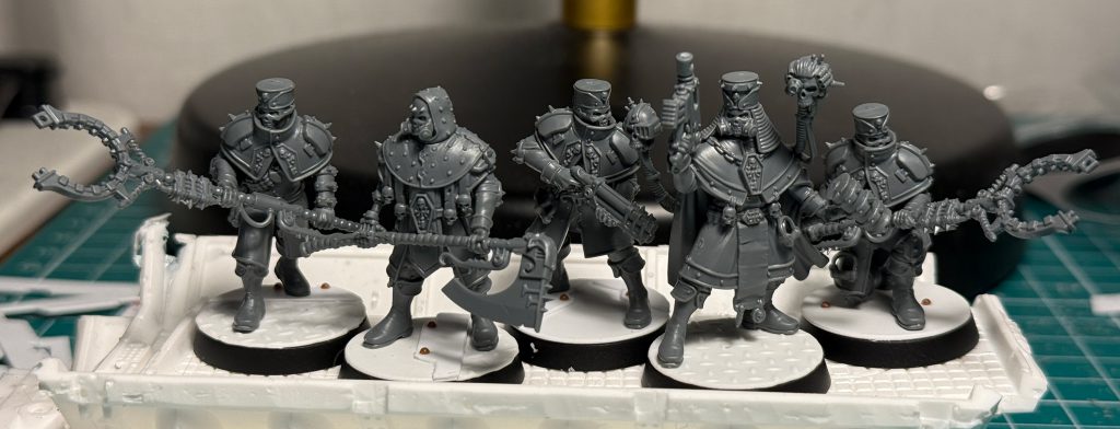 Each Bailiff model has a pouch/grenade bit, the Executioner has a pistol, the Magistrate has a pair of servo-skulls, and all of them have magnacles (handcuffs). These are just super impressive because there’s no obvious slot for them on the models’ waists - you could leave them off and there wouldn’t be any unsightly gaps - but when you slide the bit around, you find the contours guide them to sit just right in their intended spot. A testament to how finely tuned the details are in GW’s designs.