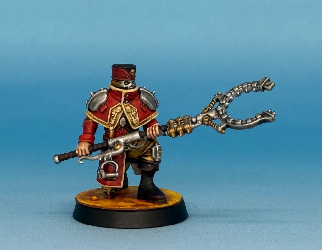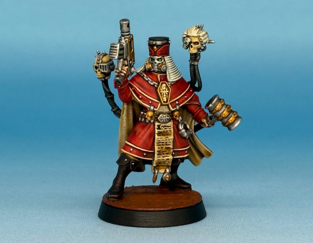 Genghis Cohen: I agonised over the mask choices for each, but I also decided to convert the Magistrate; his pistol is quite a cool one, but I knew I had a book bit lying around and I loved the vaguely judicial (but spikey!) gavel - I wanted to give him a pose brandishing this legal tome and pronouncing judgement on someone.