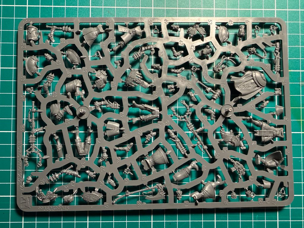 This is a modern-era GW kit, and as such the mold lines are undetectable in some areas and very fine in others - I did a minimum amount of scraping and I probably could have got away with doing none at all, the lines wouldn’t be seen under paint and primer. Sprue gates were slightly more of an issue; some were hidden on the less visible surfaces, but some were prominent, particularly on the shoulder pieces, which are one of the most visible bits of the model from a gaming-table perspective, and flat surfaces, so some care was needed to clean those up and smooth them over. As we’ve come to expect, the details are all crisp and the pieces are cut to allow depth of undercuts.