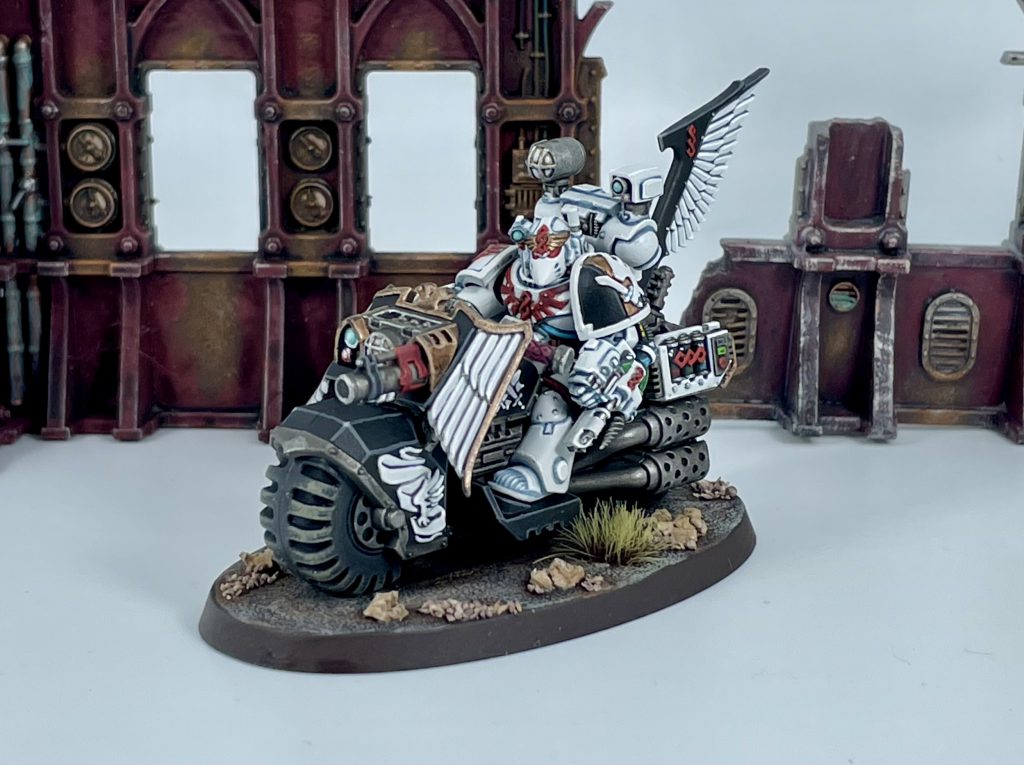 Credit: case_raceAdditionally, I painted up a Ravenwing Apothecary, because what’s better than a medic on a motorcycle? He was a good experiment with painting white using increasingly darker and more precise recess shading, which I think turned out pretty good.