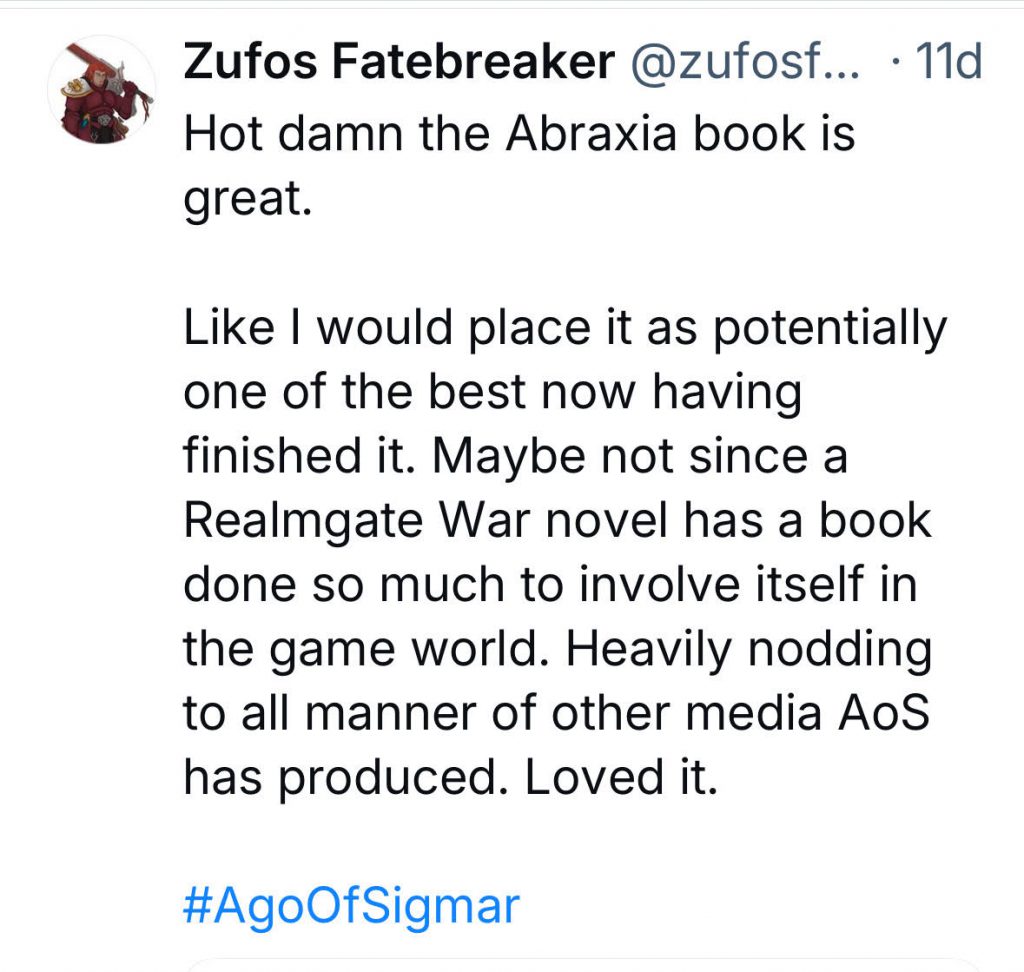 To be clear, there's nothing wrong with that. Abraxia, Spear of the Everchosen was still largely an enjoyable read even if by the midway mark I knew I wasn't engaging with the story as much as I could have been. Taking it back to my original point, that doesn't mean it's a bad book, but rather than it simply isn't a book for me. It was clearly a book for Graeme.Those more on my end of the engagement scale are still in for a treat, particularly in how Thursten treats the warriors and champions of Chaos. He did a terrific job portraying them as independent war bands with charismatic leaders, all seeing in themselves the call of the champion, all believing that they were meant to walk the Path to Glory, too confident and arrogant in their conviction that they were touched by destiny to realize that they were simply fated to become a cobblestone on the Path of another.