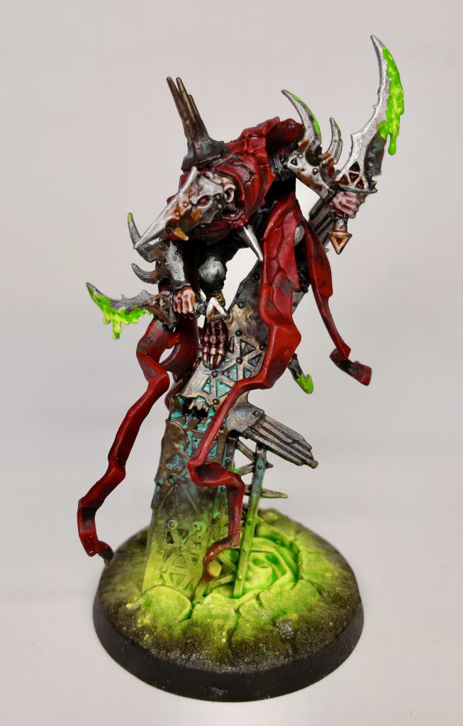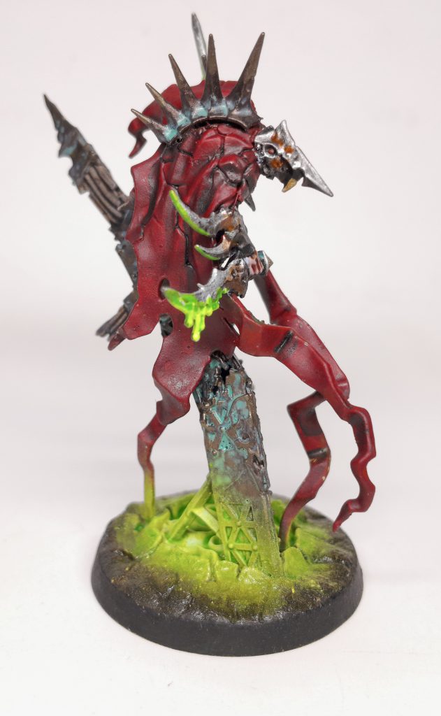 In this case Weeping Blades, the weapons from the Gutter Runners, got poison. The two portals I used an airbrush for as they are well glowy. Simply apply white into & around the portal where light would go. Then tesseract glow over the same area, followed by a green wash. Also I painted Crixxit's eyes (like 5 times, I kept messing it up) and teeth.
