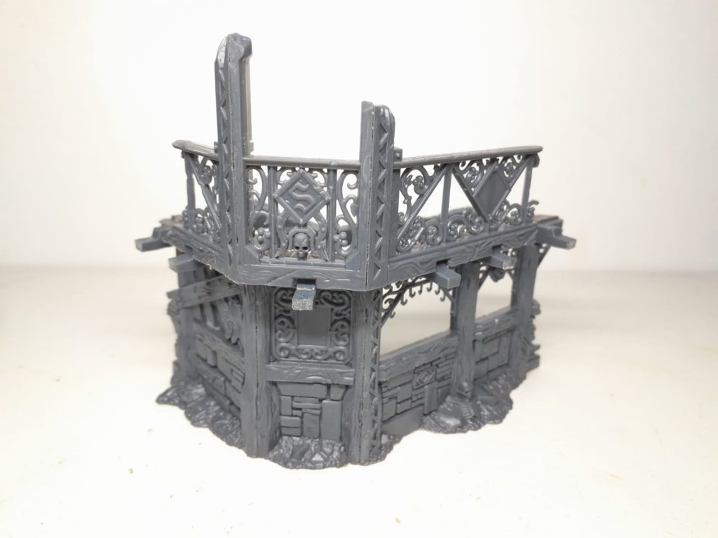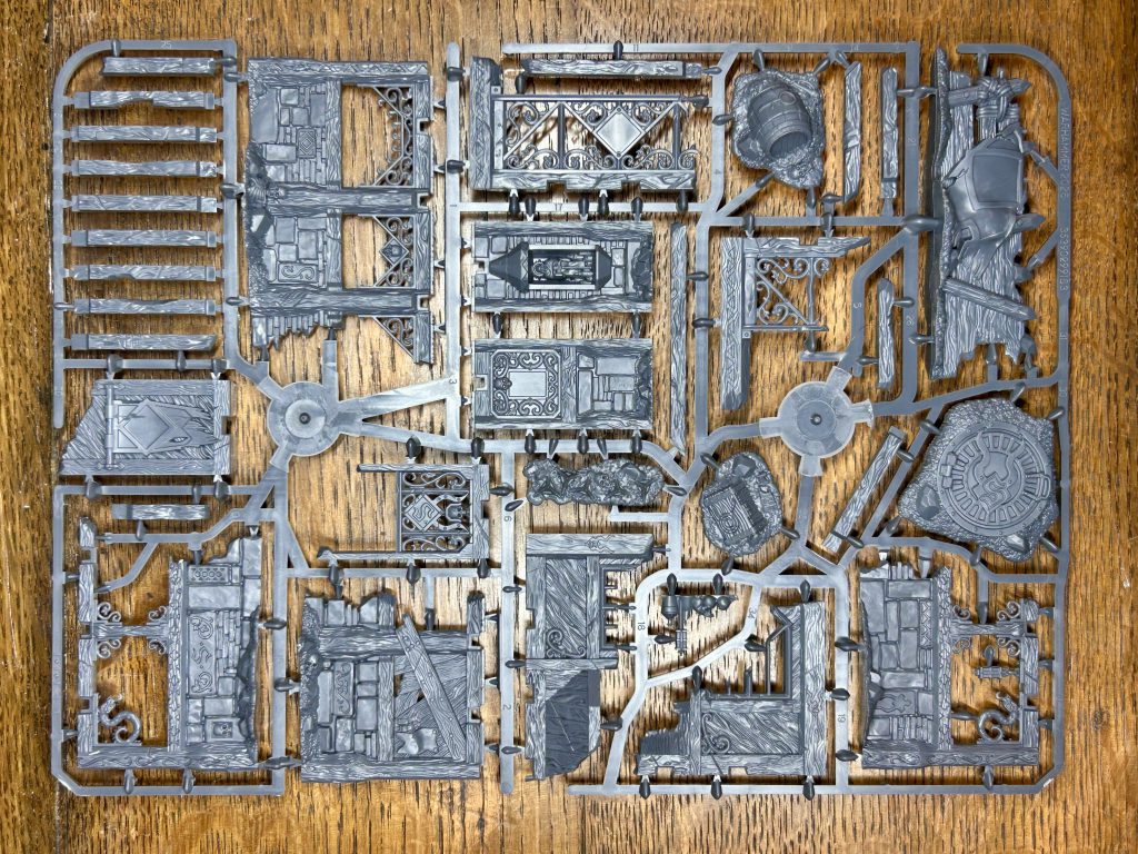 There are two small ruined building corners, one seemingly from a shop with a small shrine on the outside and the other with some fancy iron work balustrade that'd not look out of place on a New Orleans bordello. These are beautiful, they're very reminiscent of Mordheim buildings and I would be overjoyed if GW released a bigger set of similar playable buildings/ruins.