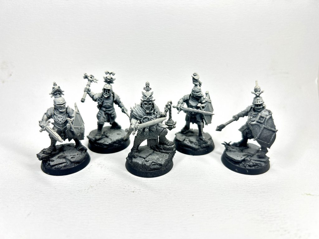 I also opted to do a simple kitbash to make one have two weapons (by using the spare sword army from the unused Standard bearer build) and did a little bashing of the heads. My champion has the savage Pig-Grill helmet combo she never new she needed!! I went for all helms on mine to set them apart as definitely knights!