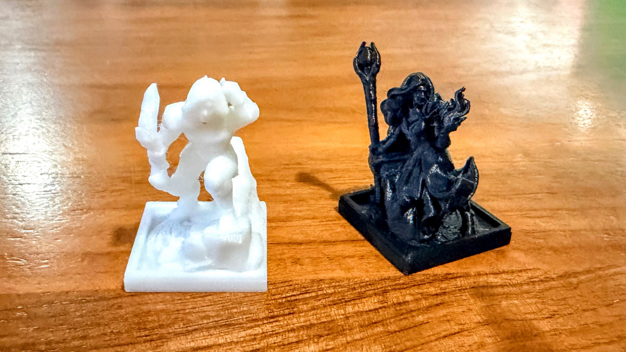 P2S Miniature TestsYou can find prints for the .4 nozzle through the Bambu Handy app. The ones I printed can be found here. After a few tests with smaller-scale, detailed miniatures (like Trench Crusade), the out-of-the-box Bambu with the 0.4 mm nozzle is not optimized for such small creations. During the tests, details and overhangs get missed. Strong support scarring and sub-optimal overhangs can create some visual issues. This is fine for proxies, but it is not winning any awards at Adepticon.