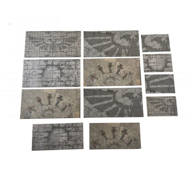 Rather than perspex areas, Bandua have designed sets of mats of the appropriate size, with five different printed design sets matching each of the five different WTC terrain tables they produce. Two of the sets (Imperium and Chaos) are generically "40K" enough that they'd go with pretty much any terrain set you wanted to use with them (with the choice between them largely coming down to whether you want a pleasant or sinister vibe), while the other three (Tau, Necron and AdMech inspired) would definitely work best with more tailored sets of terrain.