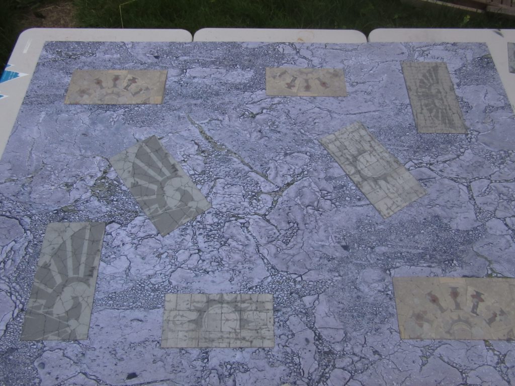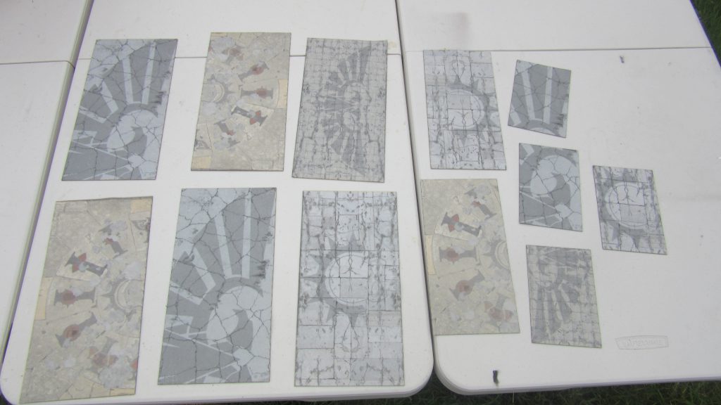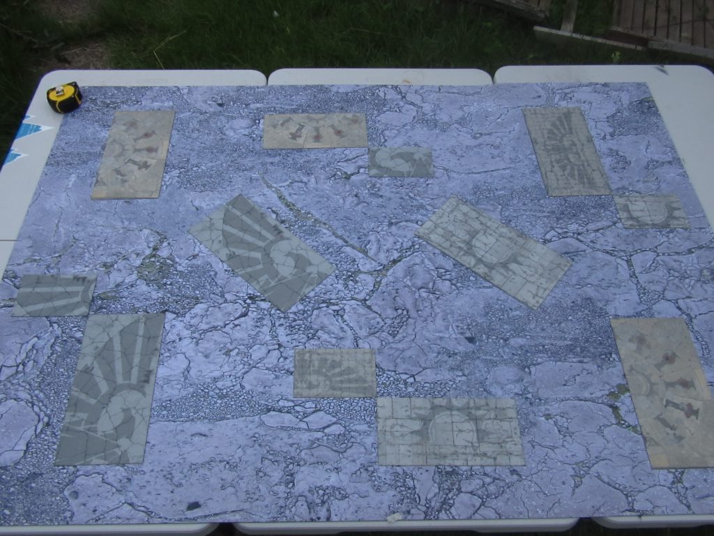 Bandua Mats laid out for GW layout 3.The weight is also great for storage - I've been just throwing these back into the box with my standard home setup without really thinking about it, and I suspect you could store most of what you need for an event in a single box, and not have to worry about the weight or scratching.