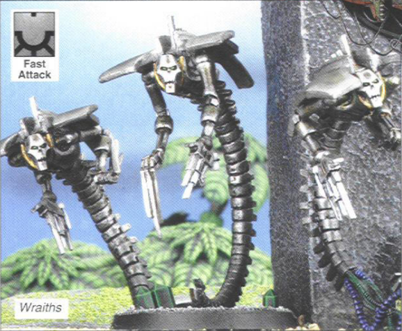 TheChirurgeon: The original wraiths were basically what Ophidian Destroyers are now. These originals were wiry, snakelike, floating Necrons with nasty melee weapons who had a 3+ invulnerable save and could phase through solid matter. They were replaced in 5th edition with Canoptek Spyders before 9th gave us a visually similar option.