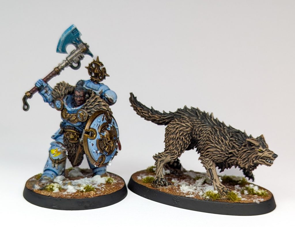 The angrier Dreadnought build foregoes the +1 Advance/Charge aura in favour of a 6+ Feel No Pain and a super Blood Surge, getting to move d6+2” towards the enemy after losing a wound to shooting. That’s a nice tool for pressuring the foe, especially with the shield to provide an Invulnerable Save, and while you don’t ever really need them, they’re pretty funny.Fenrisian Wolves