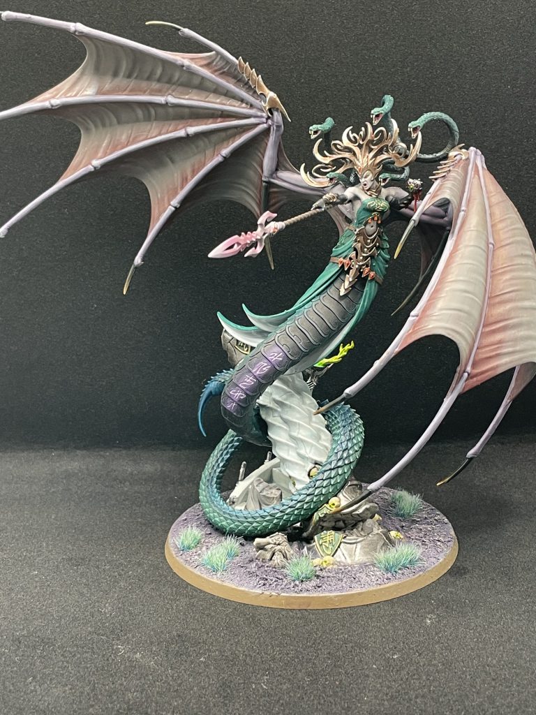 Daughters of Khaine are one of the older established armies in Age of Sigmar. They were one of the armies to get a Battletome in First Edition and have remained mostly consistent since. An army of paper thin murder elves than can usually cut through almost any enemy, but cannot take a hit in return. Led by their Matriarch Morathi, she has undergone a lot of changes, from a shapeshifter who later ascended to godhood, she has been one of the most notorious Anti-Heroes in Age of Sigmar.