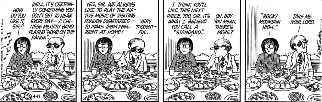 Image credit: Garry TrudeauJames is terrific at writing dialogue and moments that brings his characters to life, replete with little details that make them feel whole and lived-in. Hesh's first ("and second-last") kiss, behind a statue in Krieg Cavalry School. Sentinel pilot Lance's crumpled collection of ration sweets. "Human and equine chirurgeon" Ashe's folksy, feudal-world echoes. And of course, this wonderfully insightful passage: