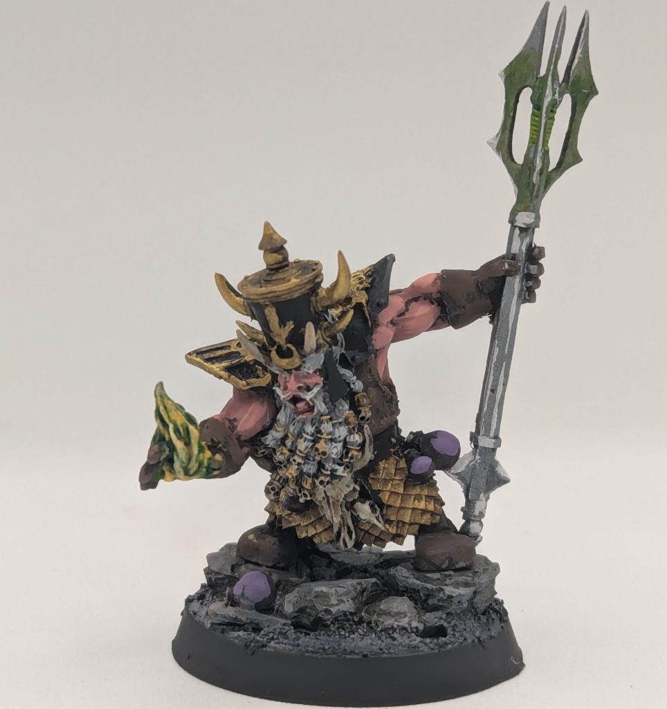 Credit - MildnormanKicking us off is the only named character in the range, Urak Taar. He’s a Monster (both keyword wise and metaphorically), War Machine and Wizard(2). Coming in with a 10” move, 16 wounds and a 3+ save, he’s got a statblock fit to rumble. Offensively, he's got his Ruinous Torrents which is a 18” range attack with 6 attacks at 4s 4s r-1 D3 damage with crit (2-hits) and shoot in combat. This can be surprisingly effective and the long range is very welcome. In melee he has two profiles; Dumakaz with 4 attacks at 4s 3s r-1 D3 damage and his mount Ghorrakos’s hooves at 6 attacks 4s 2s r-2 3 damage with +1 damage on the charge. While he can rumble it's a bit swingy with everything on 4s but flat 4 damage on the charge is brutal. Where he shines though is his abilities. First he has stacking effects for each Power Point he has, giving him a 6+ ward, a 5+ ward with +1 to cast, and a 4+ ward to spells and prayers with +2 to cast for 1,2 and 3, points respectively. 16 wounds with a 3+ 5++ makes him one of the most durable monsters in the game and the bonuses to cast can make even the most powerful spells reliable. He has his own warscroll spell Curse of Stone which has you pick two points within 9” of him and then 9” from the first point and everything it goes across takes D3 mortal wounds on a 2+. This is a nice way to snipe out weaker characters over time if your opponent isn't careful. His rampage has him do D3 mortals and then move 2d6” which can end in combat. There’s no roll here for either the ability or the mortals, it just happens, making him a fantastic tech piece once you get into melee to hop behind your opponent’s screens or just to reposition to a favorable place to make your opponent’s pile in annoying. Lastly but most importantly, Master of Daemonic Power lets you remove up to 3 tokens from a unit wholly within 18” and redistribute them to something else wholly within 18” in your opponent’s Hero phase. This is a massive bonus, allowing you to switch from offensive to defensive buffs as you move through turns. Sitting at 350, I expect him to make most lists.
