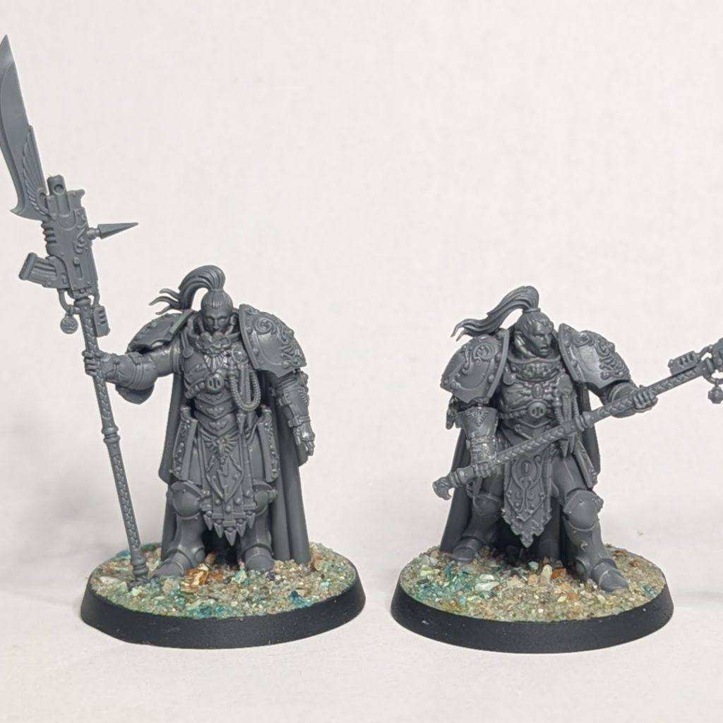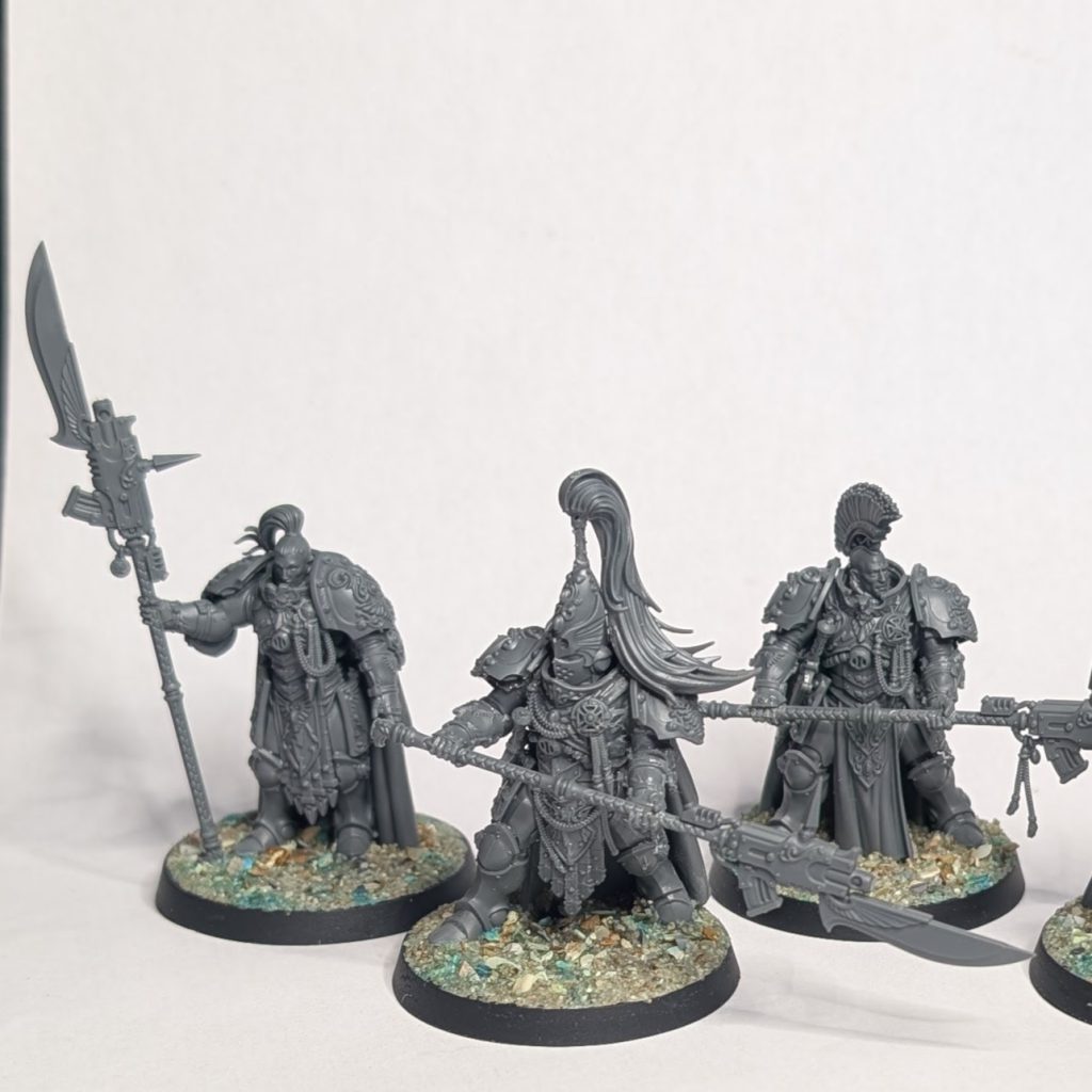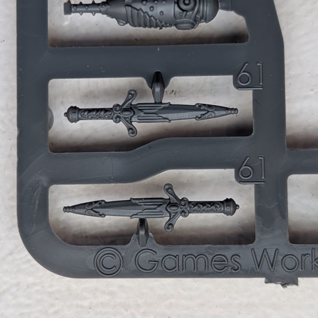 Badusernametag: For extremely complex and detailed models these go together very easily indeed. The basic body of each model is eight parts (front-back-leg-leg-grieve-grieve-foof-cape) and this assembly is future simple. After that there are not many options here. Of the six, only one of the builds has an option, this is to have the vexilla or not. The vexilla bearer can also have a choice of Misericordia or sword, but that is it. Theres no more options here and the variety comes from the choice and postitioning of the head alone. Having built two straight from the instructions (in order to get phoenix’s quickly) I thought I had a crack at mixing the remaining arms and bodies up, as I looked like this was possible. Sadly due to minute differences in arm alignments and connecting pieces I was wrong and without some work these are essentially mono-pose models. Given that it’s capes are resting on the ground and also moulded into the arms, pauldrons, weapons etc it would actually be some work to kitbash or even modify these at all. Now maybe you have so few in an army that it wouldn’t matter, but I think this is a real shame. This kit is ostensibly a multipart kit, but in reality they may as well be push fit. It all aligns just so and that is the pose you get. Now don’t get me wrong they’re lovely models, but if you were expecting some variety please don’t be disappointed.Whilst a little disappointed by the lack of options for modelling here I am overall impressed by the sculpts and may get some more when the box drops. Feel like it would be a fun little project.
